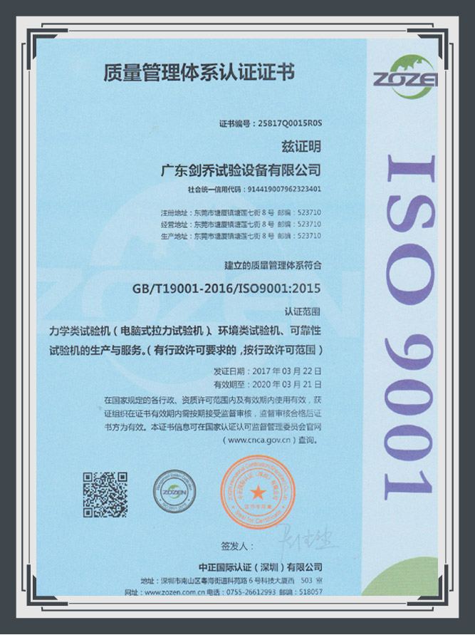 廣東劍喬試驗設備有限公司【劍喬儀器】20年振動及環(huán)境試驗設備生產大型廠家,主營產品:恒溫恒濕試驗箱、冷熱沖擊試驗箱、三綜合試驗箱、振動試驗機等,歡迎來電咨詢.服務熱線:0769-87922848!